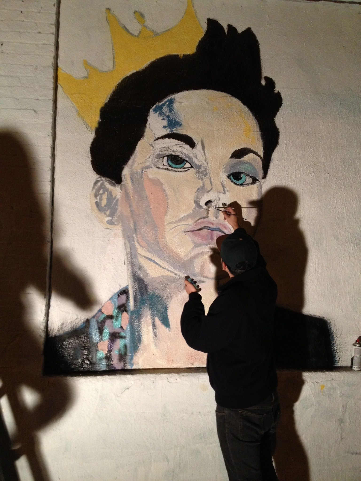 Daniela Lloveras, a BA/BFA senior studying psychology and Fine Arts, first had the idea of replicating Turi’s 4×4’ canvas as a mural on the corner of Waterbury and Meserole Street, right outside of Lloveras’ AMO art studio in Bushwick, Brooklyn. “The walls in the vicinity are mostly covered in murals and some are memorials, so it seemed like a perfect spot,” she said.