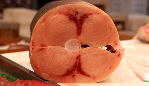 A freshly cut cross-section of swordfish ready to be fileted on the table of the South Street Seafood Corporation stall (Lindsay Peters)