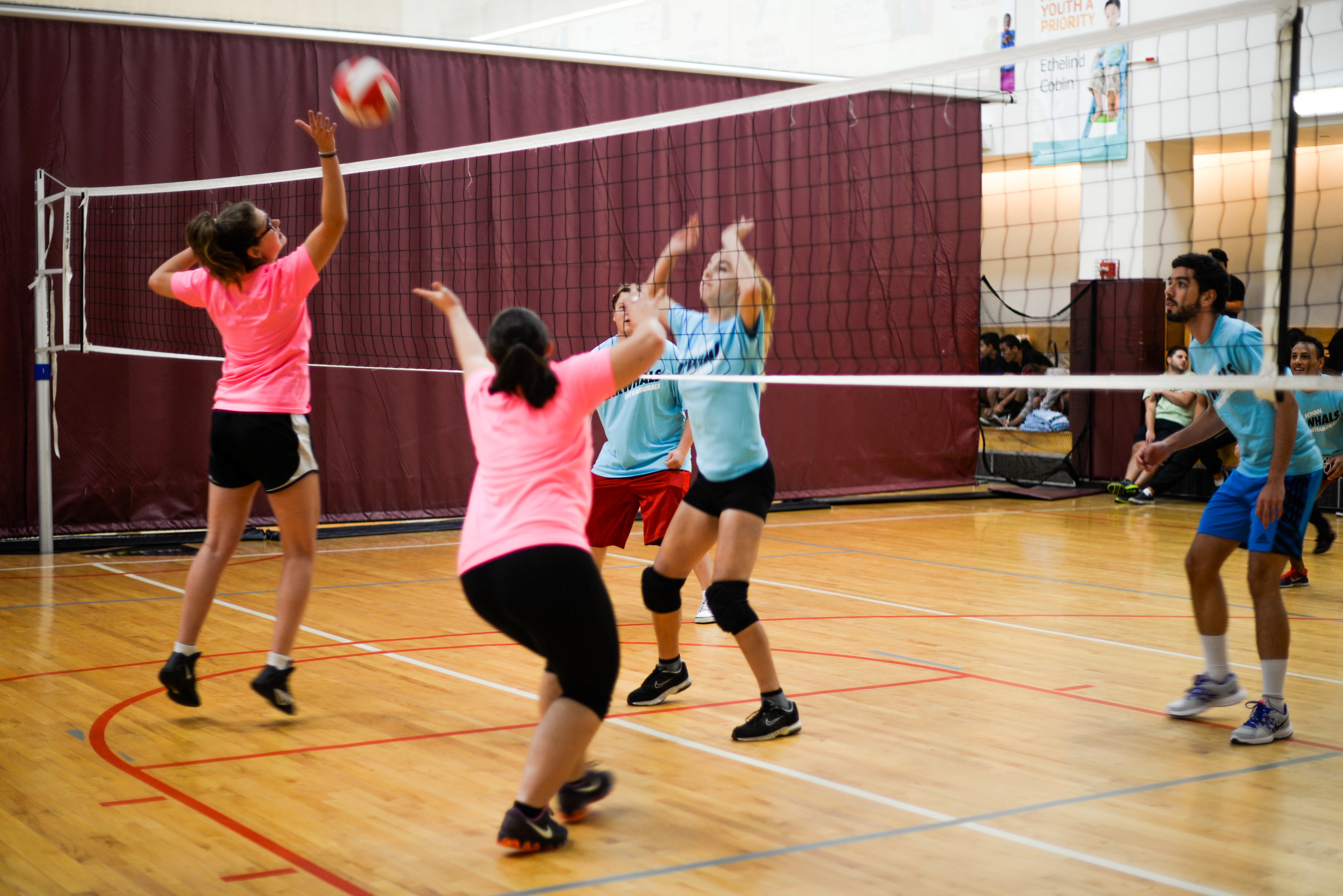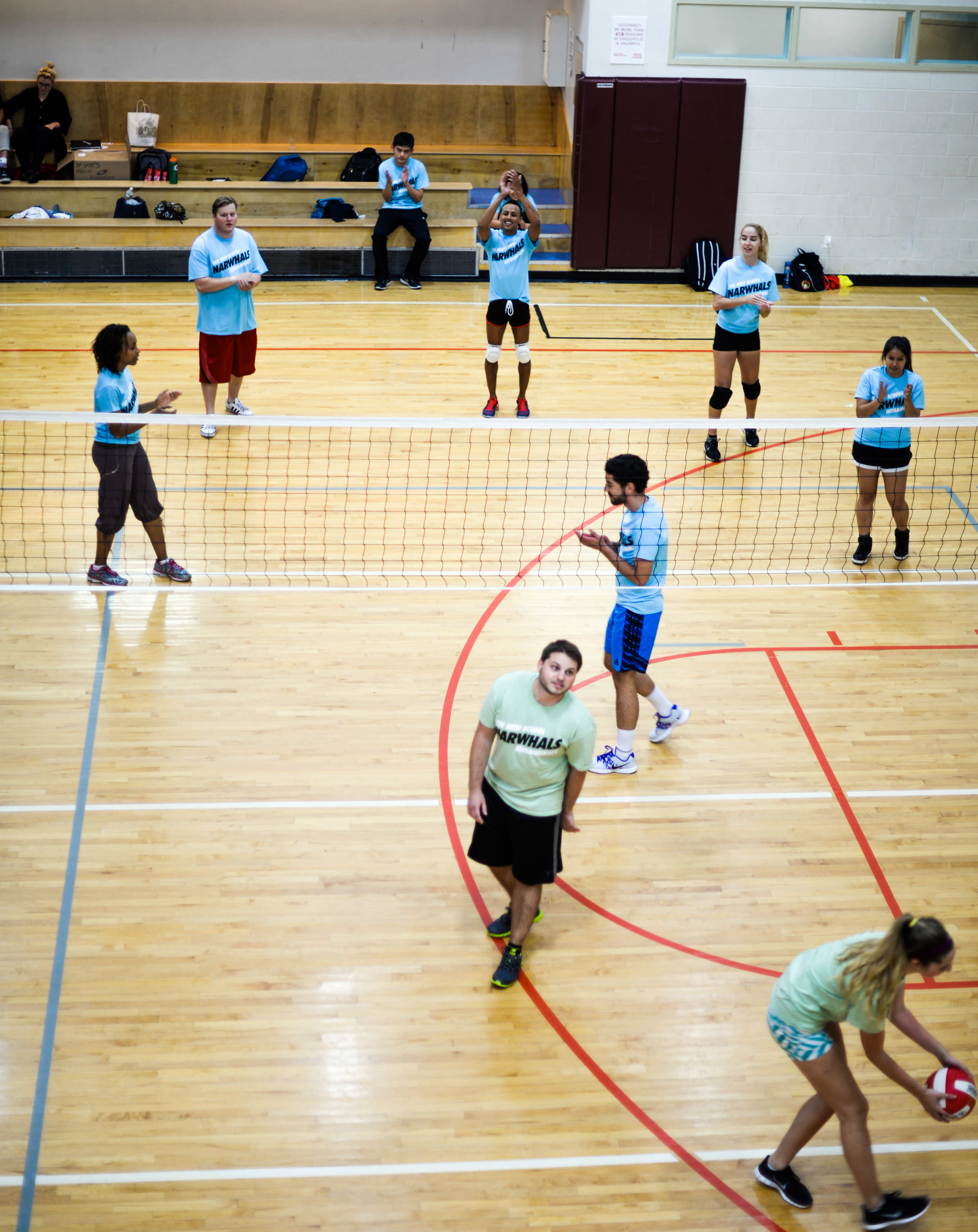 Volleyball matches are six on six and the league has a five team cap with a minimum of eight players on a team. Teams play three sets to twenty-one in each match and the team that wins two out of three sets wins the match.